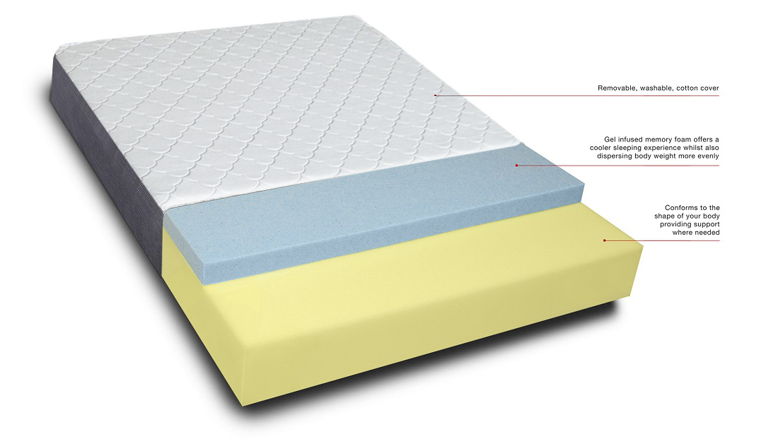 - A layer of h.2 cm, non-deformable, high density Memory Foam;